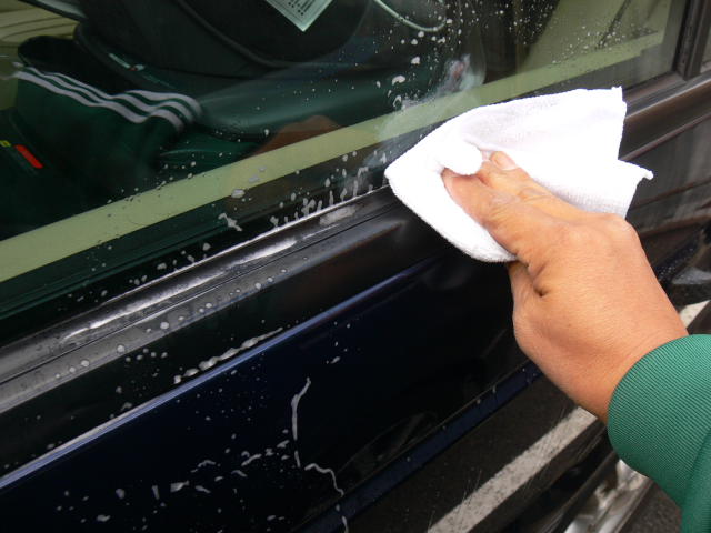 どこにスプレーしてもOK、がウリの製品。試しにサイドウインドウとウェザーストリップ(ゴム)にもシューッとしてみました。ガラス面にもばっちり掛かりましたが、拭き上げると嘘のように油膜が残りません。さらに驚きなのはゴムの艶が蘇ったことです。マメに洗車していても白く曇ってしまうばかりでどうしても老齢化が目立ってしまうゴム部分。しかし ICEシンセティックワックスのおかげで見事に黒い艶を取り戻しました!どこにでもスプレーできて拭き上げまでスピーディに行える…という作業性の良さはもとより、黒いゴム部分やプラスチック部分のクリーニング&艶出しまで一挙に行えるこのアイテム。全体を作業し終わった頃には、期待していた以上のシャッキリ感が愛車にもたらされていました。定期的なボディケアには今後、欠かせないアイテムになりそうです!
