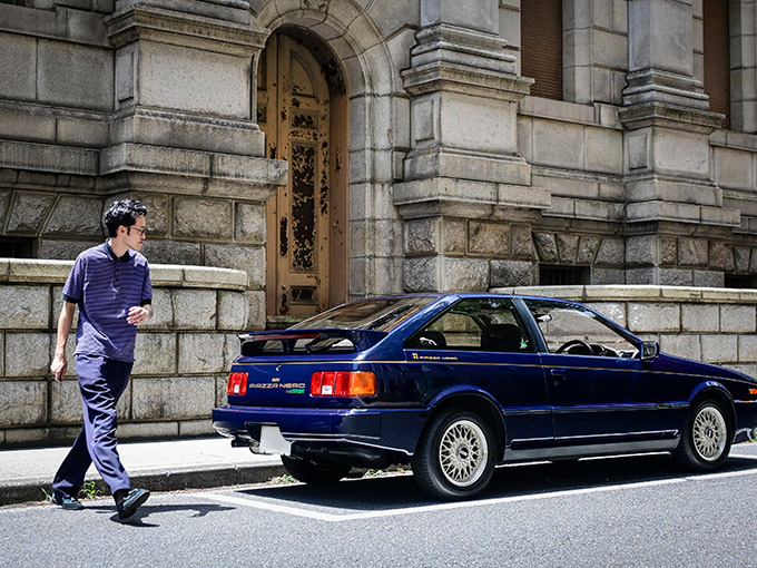「もともと古着とか買うタイプではなかったんですけど、この車をきっかけに当時のファッションとか音楽とか、80年代のカルチャー全般に興味を持つようになりましたね。当時は僕と同じ世代がこういう服でピアッツァに乗ったりしていたんだろうか、とかイメージするのが楽しくて」